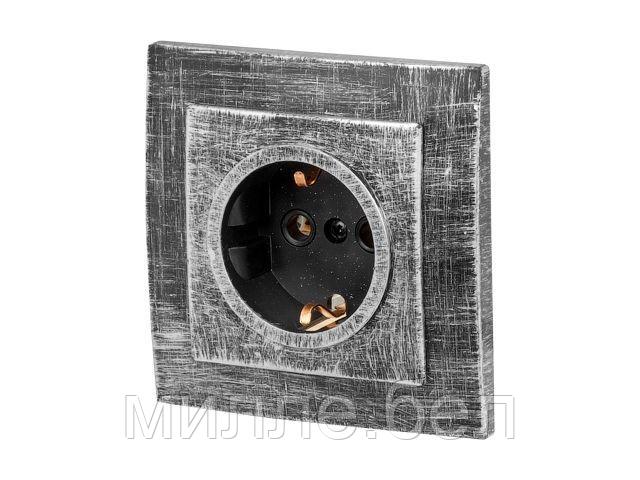 Розетка 1-ая (скрытая, с/з) серебро, Стандарт, Юпитер (RS 16-133 ЧС) (ЮПИТЕР)