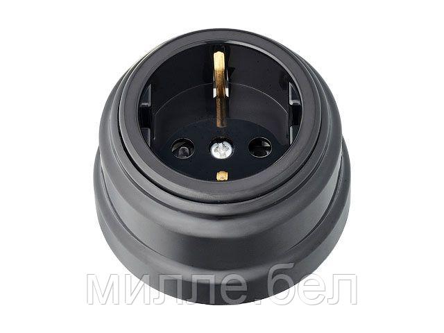 Розетка 1-ая (открытая, с/з, з/ш) черная, Ретро, BYLECTRICA (без монтажной панели)