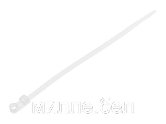 Нейлоновая хомут-стяжка с монтажным отверстием — крепёжный элемент для фиксации и организации кабелей, проводов, шлангов и труб с возможностью крепления к поверхности. Помимо стандартной зубчатой ленты с самоблокирующимся замком, имеет расширенную головку с отверстием под винт или саморез. Это позволяет одновременно стянуть пучок кабелей и закрепить его на стене, потолке, панели или другой опорной конструкции.